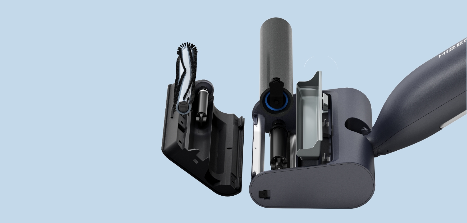 Le rouleau multifonction de HIZERO absorbe toute la poussière et les débris de votre sol, empêchant ainsi leur redistribution dans votre maison.