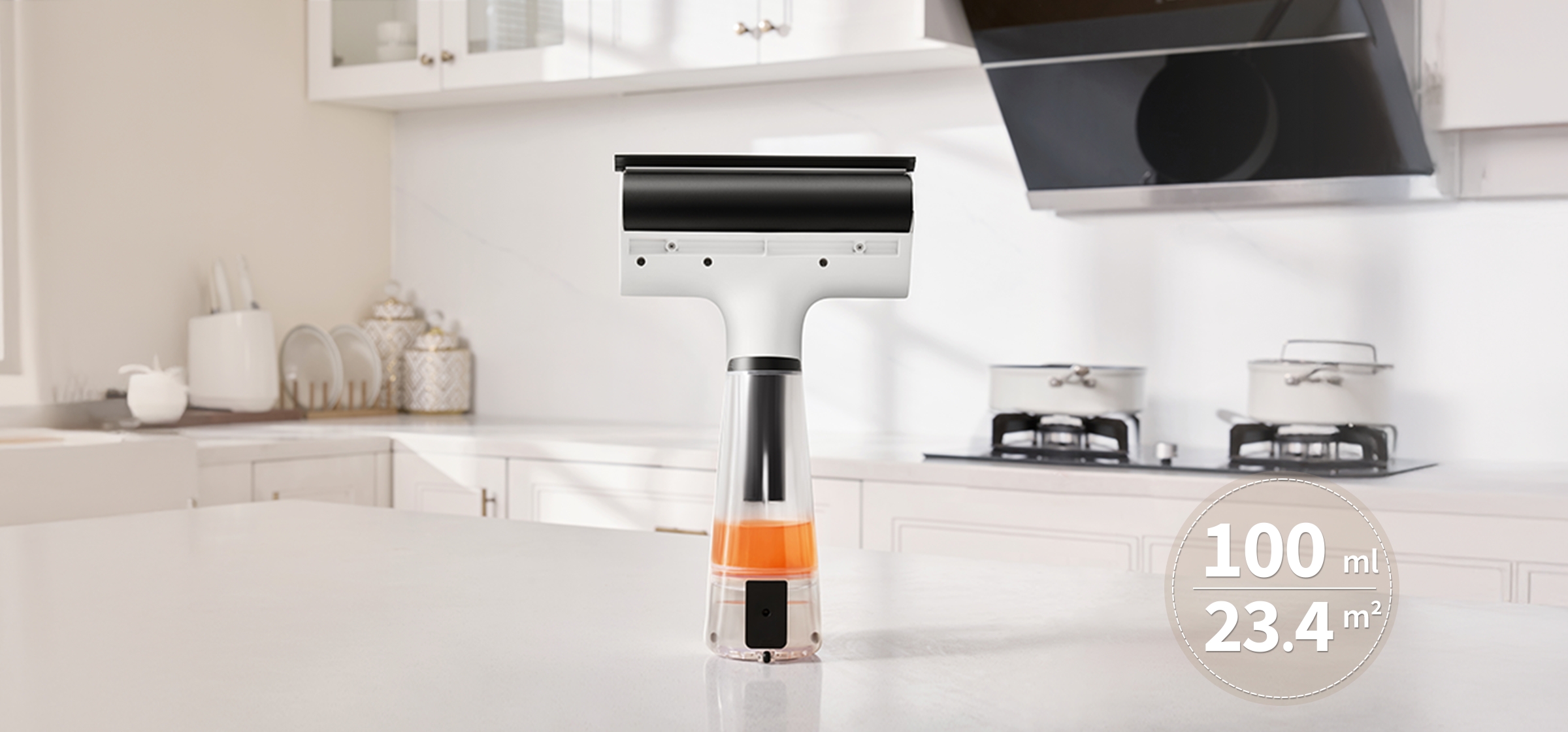 Clean 23.4 square meters with just 100ml of water. Fewer refills, more cleaning time.