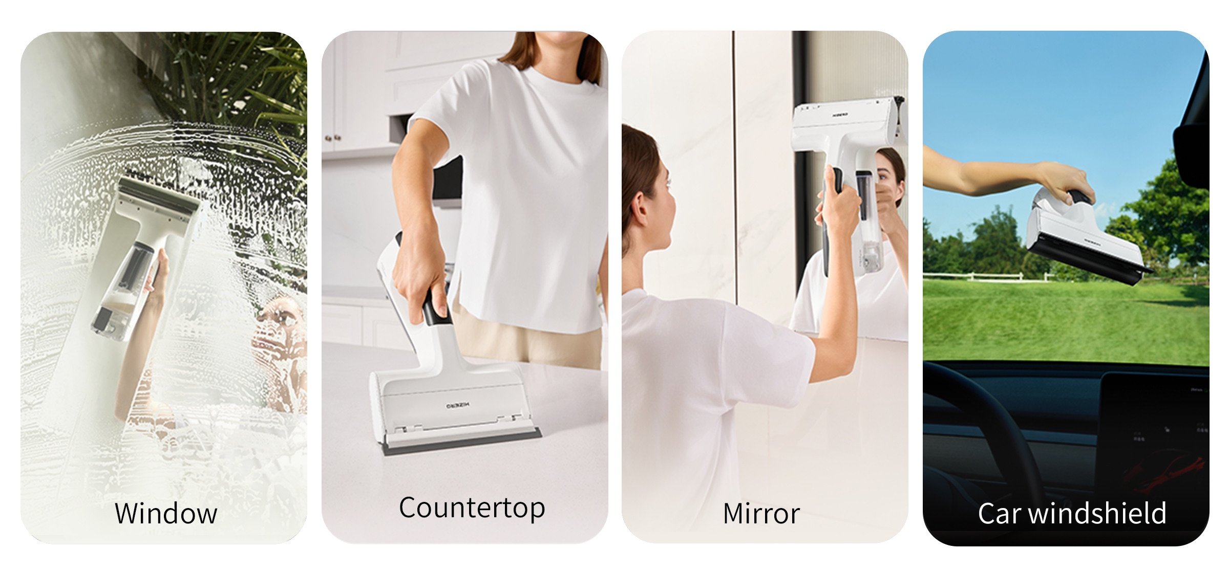 From delicate windows to tough car windshields, H100's soft multi-roller conquers any hard surface without scratching.